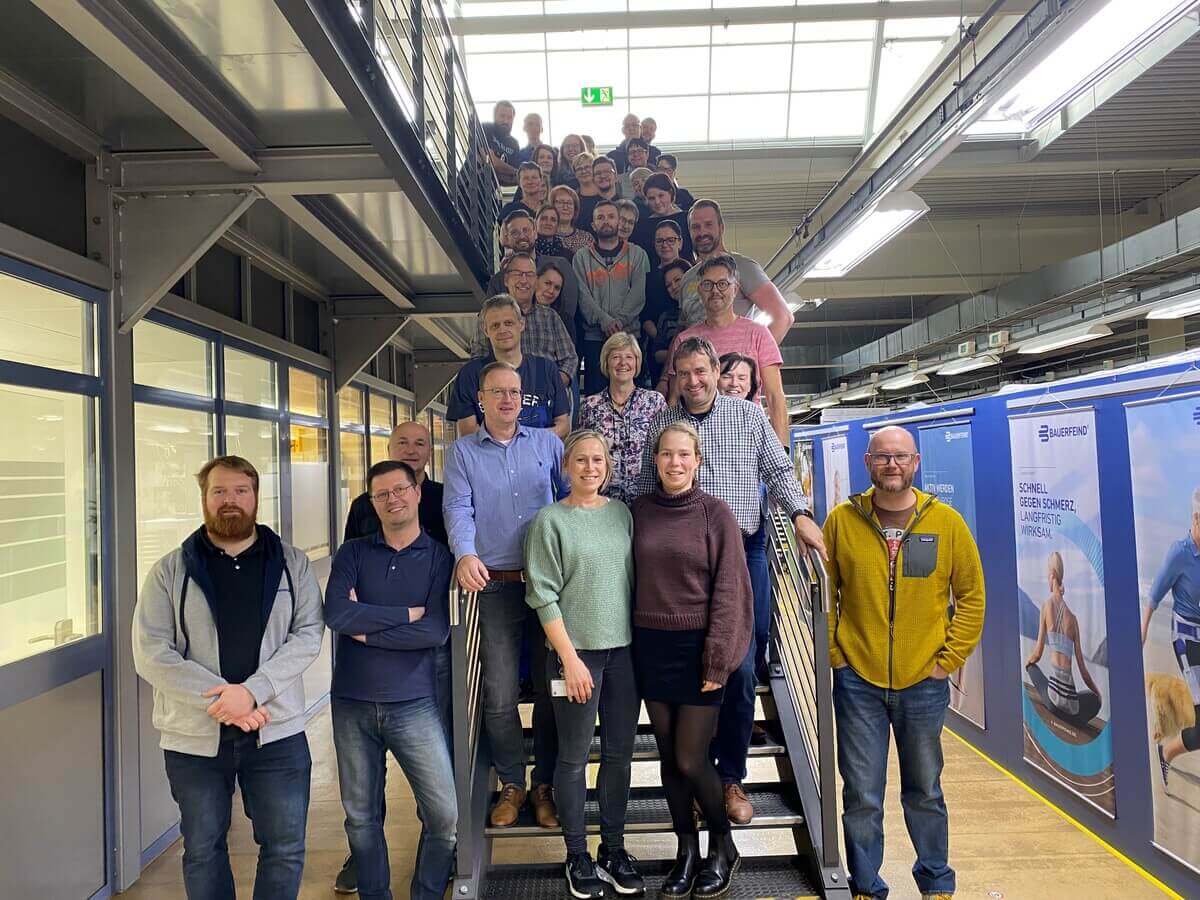 Vor Kurzem hatten wir über die zwei Neuprodukte SecuTec Genu Flex und Outdoor Knee Support berichtet, die für die Kniekompetenz von Bauerfeind stehen. Aber auch die Markteinführung der GenuTrain A3 in neuer Generation möchten wir nicht außer Acht lassen. Über 50 Kolleginnen und Kollegen aus verschiedensten Bereichen haben an diesem Projekt mitgearbeitet. Bei einem gemeinsamen Projektabschluss bedankten sich Anika Stöhr und Juliane Wiedner (vorne Mitte) bei allen Beteiligten: „Die Zusammenarbeit und die Markteinführung liefen reibungslos, darauf sind wir stolz“, so die Produktmanagerin Bandagen und die Mitarbeiterin Entwicklung Orthopädie.