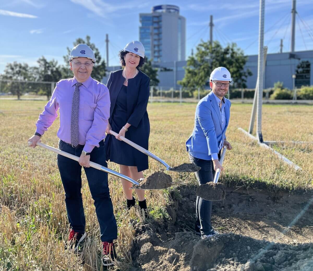 Last week, Chief Technology Officer Katharina Dietrich performed the symbolic groundbreaking ceremony for the new energy center in Zeulenroda, together with her colleagues Christian Hagemann (Head of Technology) and David Eichhorn (Head of Property Management), who is leading the project. In addition to Bauerfeind employees, guests at this small ceremony included architects, planners, general contractors, and energy consultants.